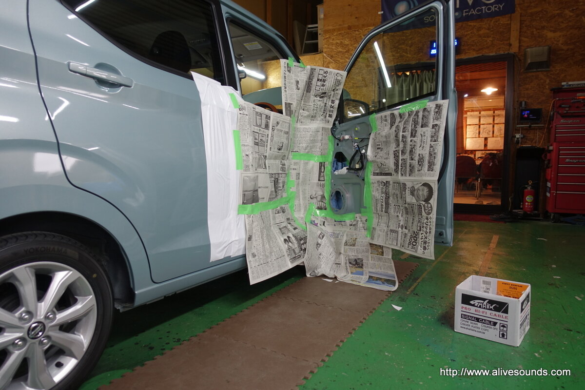 鉄粉が飛び散るのでドア内部等をしっかりと養生。